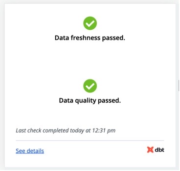 С помощью тайлов состояния данных заинтересованные стороны могут с первого взгляда понять, являются ли данные, на которые они смотрят, устаревшими или деградировавшими. Это позволяет командам сразу вернуться в Catalog, чтобы получить больше подробностей и заняться расследованием проблем.